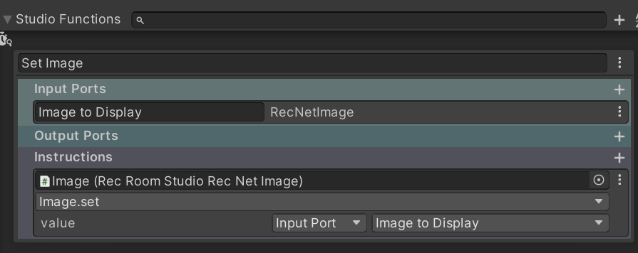 - In order to set the Image property on RecRoomStudioRecNetImage component, you’ll need to set up a Studio Function. An example would be: